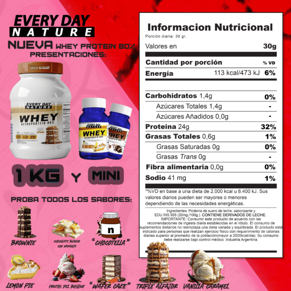 La Ultraprotein 80 de Everyday Nature en pote de 1 kg ofrece proteína whey concentrada al 80%, de alta calidad, excelente solubilidad y 8 sabores irresistibles, con cuchara medidora interna para dosificar fácil y correctamente.
