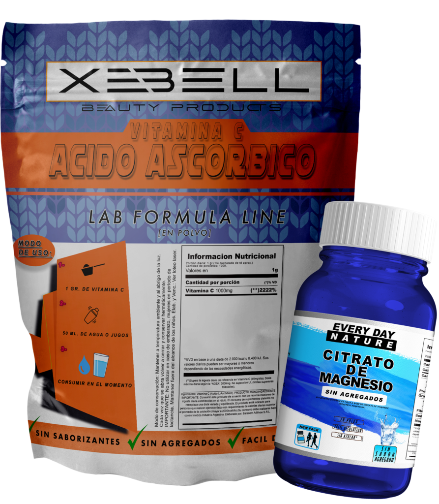 Vitamina C Acido L-Ascorbico USP x 1 Kg Xebell + 50 Gr Citrato Magnesio EveryDay Gratis